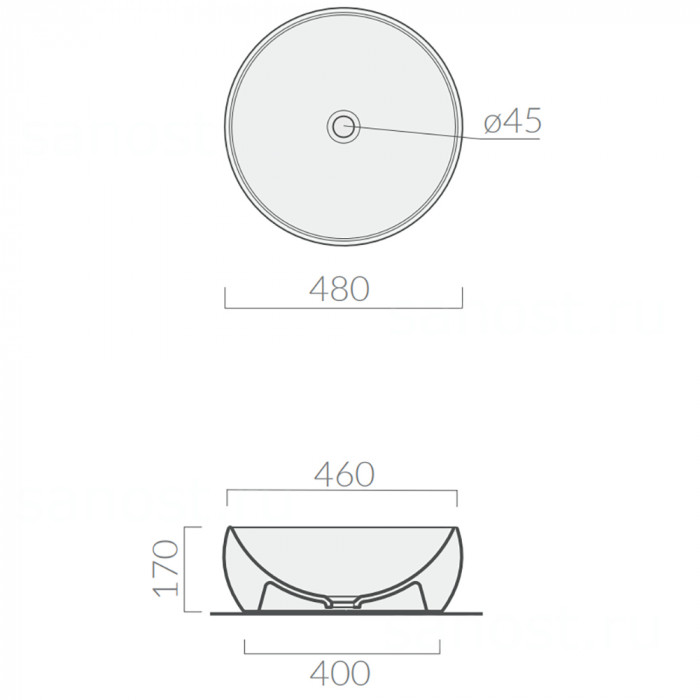 Galassia Dream 7333 Накладная раковина Ø 480 мм (белый глянцевый), для монтажа на плоскость (сверху), без отверстия для перелива, без отверстия для смесителя. Дополнительно приобретать сливной клапан с керамической крышкой арт. 9916 BI.