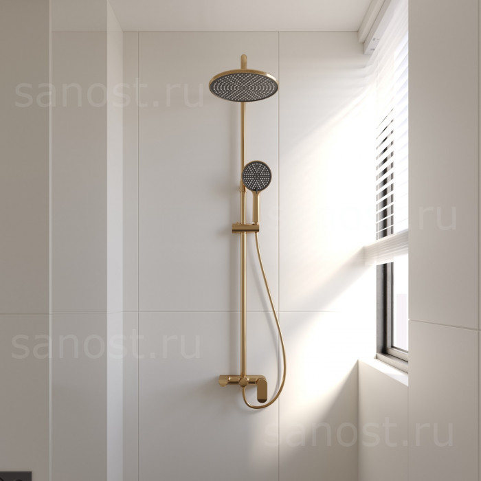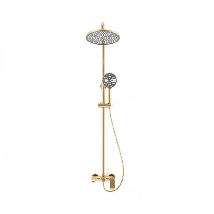 Душевая стойка FERRI, золото брашинг, Veconi, Китай. Количество режимов струи верхнего душа: 3. Смеситель есть. Ручной душ есть. Излив для наполнения ванны есть. Шланг для душа металлический.