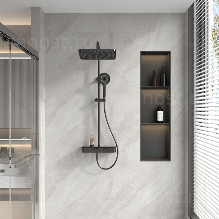 Душевая стойка FOSSA, чёрный матовый, Veconi, Китай. Количество режимов струи верхнего душа: 3. Смеситель есть. Ручной душ есть. Излив для наполнения ванны есть. Шланг для душа из ПВХ .