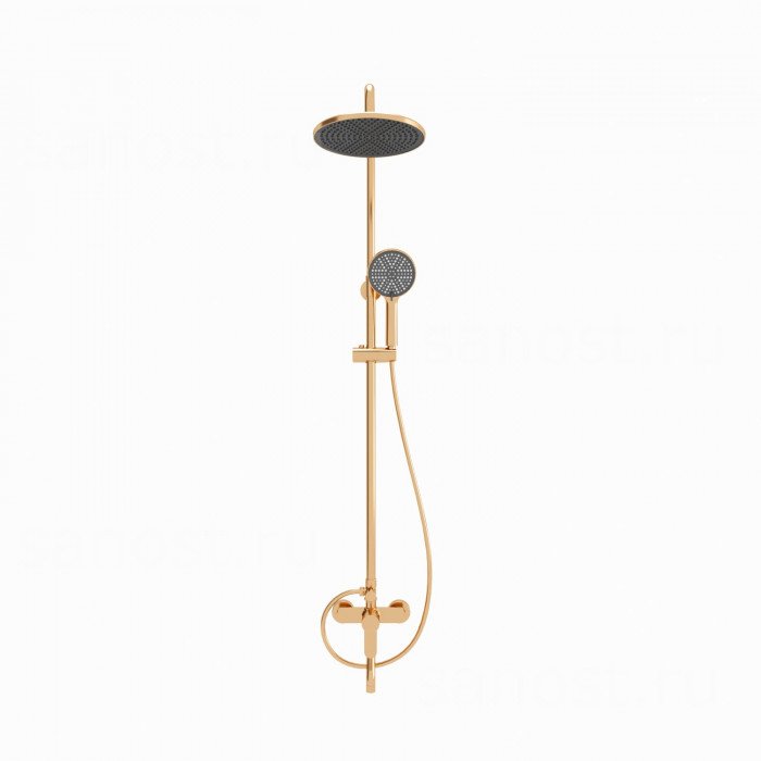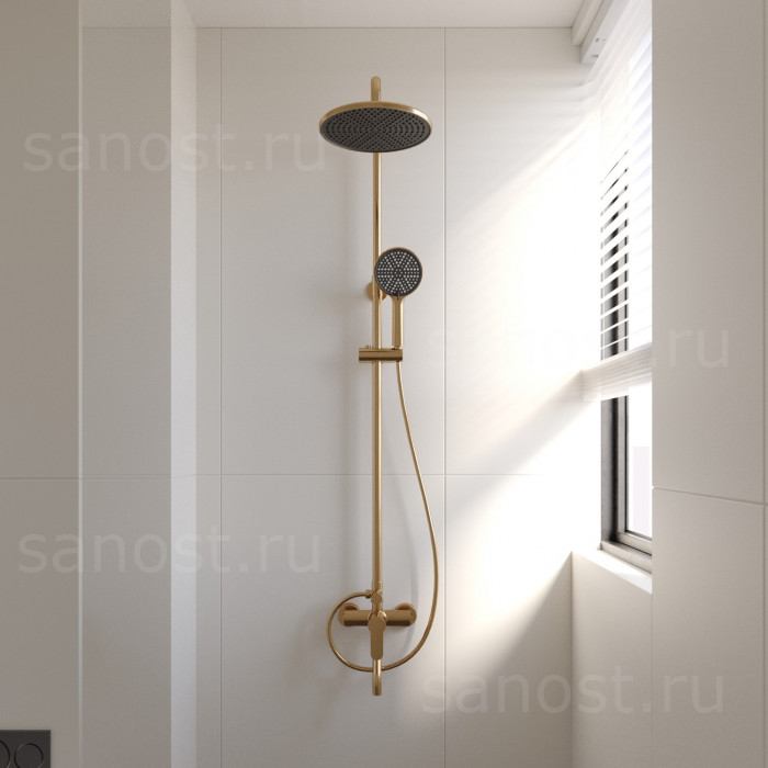 Душевая стойка TURI, золото брашинг, Veconi, Китай. Количество режимов струи верхнего душа: 3. Смеситель есть. Ручной душ есть. Излив для наполнения ванны есть. Шланг для душа металлический.