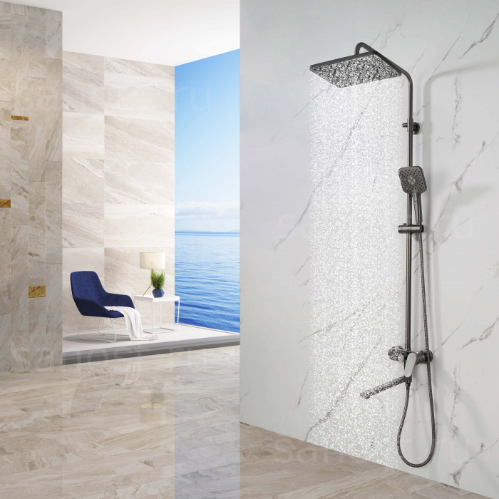 AQ2840BGM НИКА душевая система (смеситель для ванны) 3 jet 300х193 мм с длинным изливом, оружейная сталь