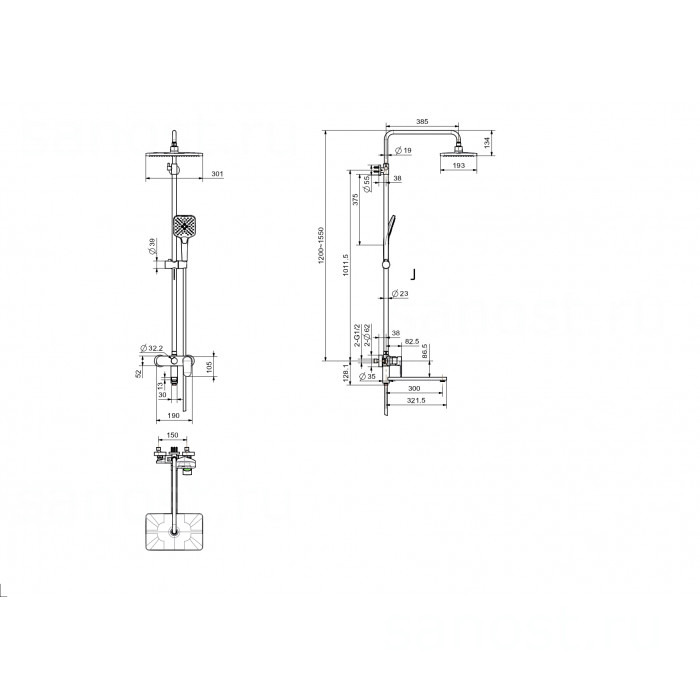 Технические характеристики AQ2840BGM НИКА душевая система (смеситель для ванны) 3 jet 300х193 мм с длинным изливом, оружейная сталь