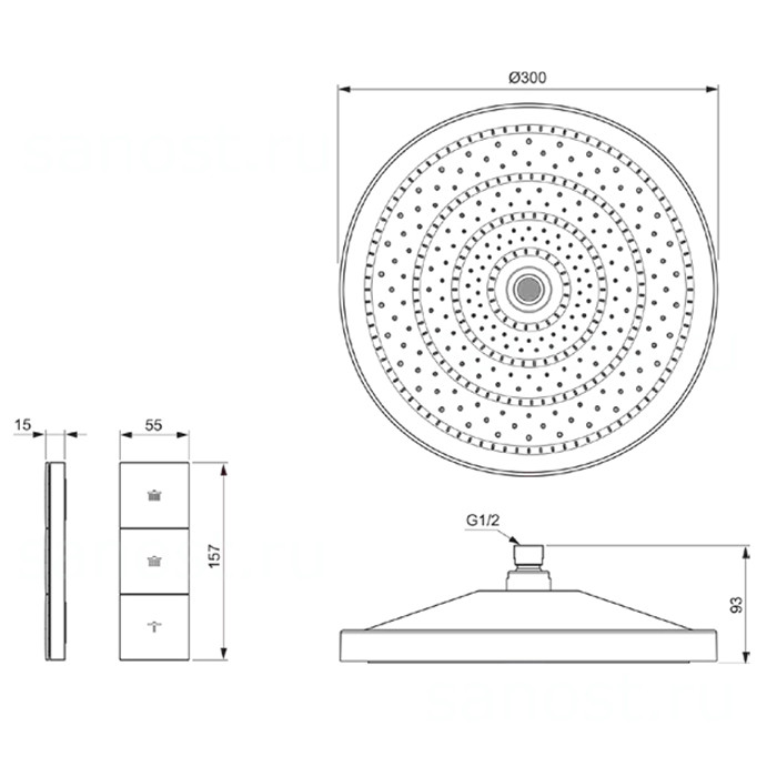 Ideal Standard Solos 3-функциональный верхний душ (Rain, Silkrain, SecondSkin) 30 см, цвет: PVD Silver Storm