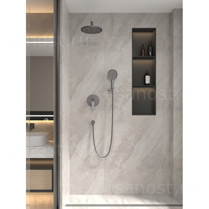 Встраиваемая душевая система TEORA, Графит брашинг, Veconi, Китай. Количество режимов струи верхнего душа: 3. Смеситель есть. Ручной душ есть. Излив для наполнения ванны есть. Шланг из нержавеющей стали .