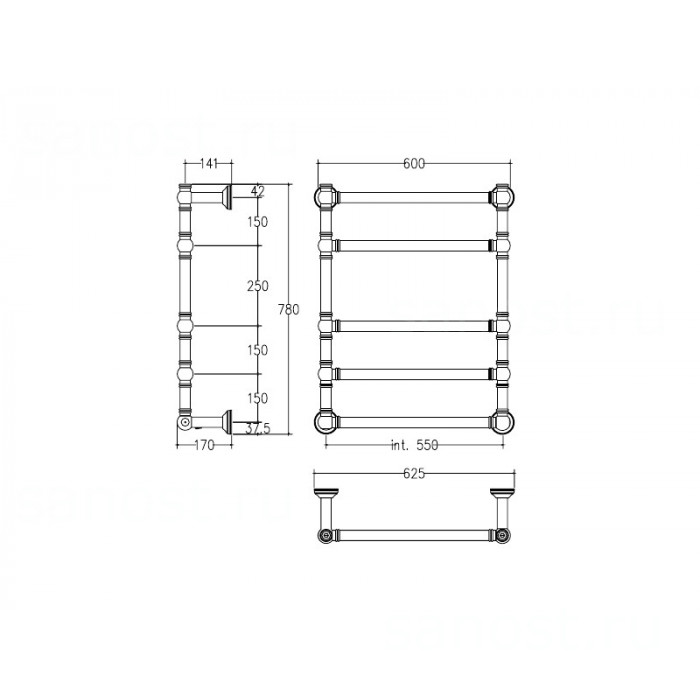 Технические характеристики ARMONIA 9-514 Полотенцесушитель эл. с выключателем,5 лесенок, int.550, цвет chrome