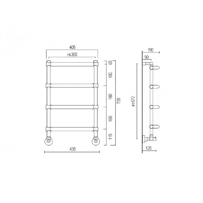 Технические характеристики LUNA 432 Полотенсушитель водяной, лесен.4М int.360,chrome
