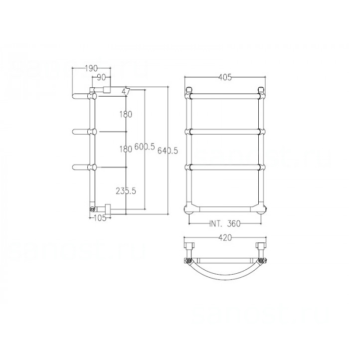 Технические характеристики LUNA 523 Полотенцесушитель эл.с выключателем,4 лесенки,int.360mm, цвет хром