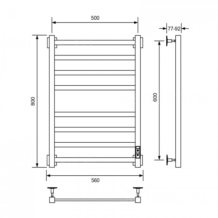 Технические характеристики Полотенцесушитель электрический Barro-A, 50/80, черный