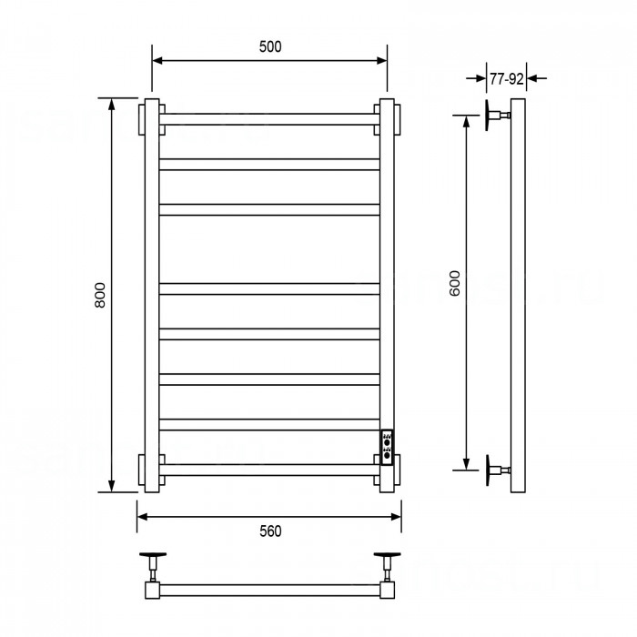 Технические характеристики Полотенцесушитель электрический Barro-B, 50/100, черный