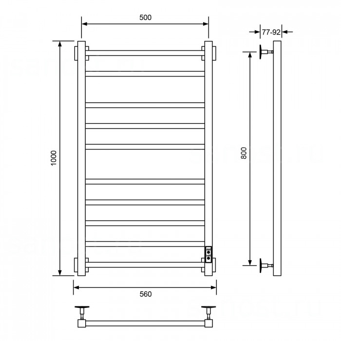 Технические характеристики Полотенцесушитель электрический Barro-B, 50/100, хром