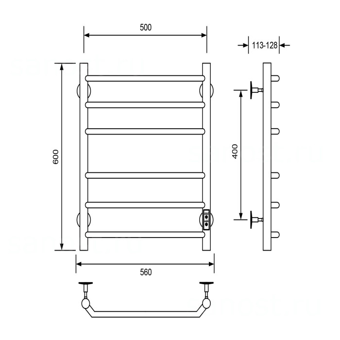 Технические характеристики Полотенцесушитель электрический Cantu-A, 50/60, черный