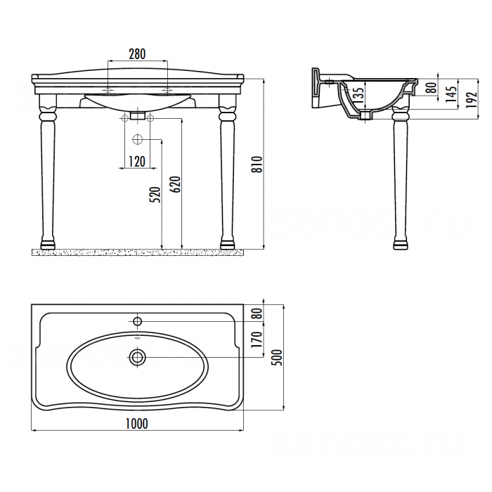 Технические характеристики CREAVIT ANTIK Раковина AN100