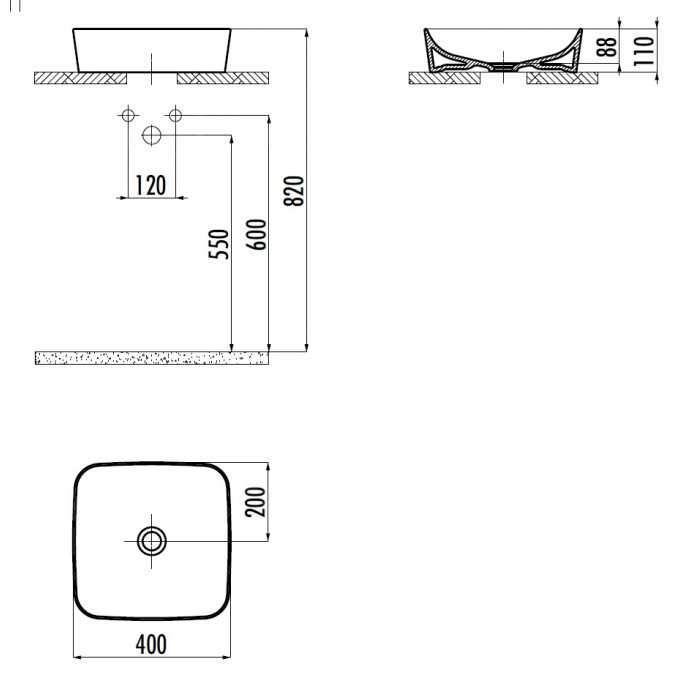 Технические характеристики CREAVIT Раковина мебельная (40*40 см) БАЗАЛЬТ UL040.2