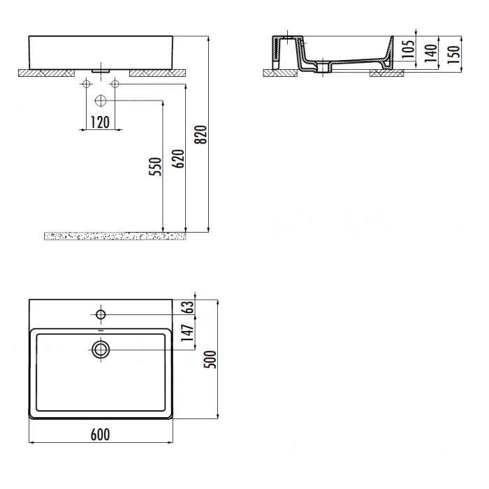 | Монтажк столешнице | МатериалСанфарфор | ОсобенностиКрепления в комплекте |