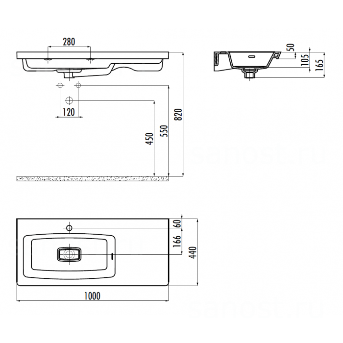 Технические характеристики CREAVIT Раковина MY100 мебельная (100см)