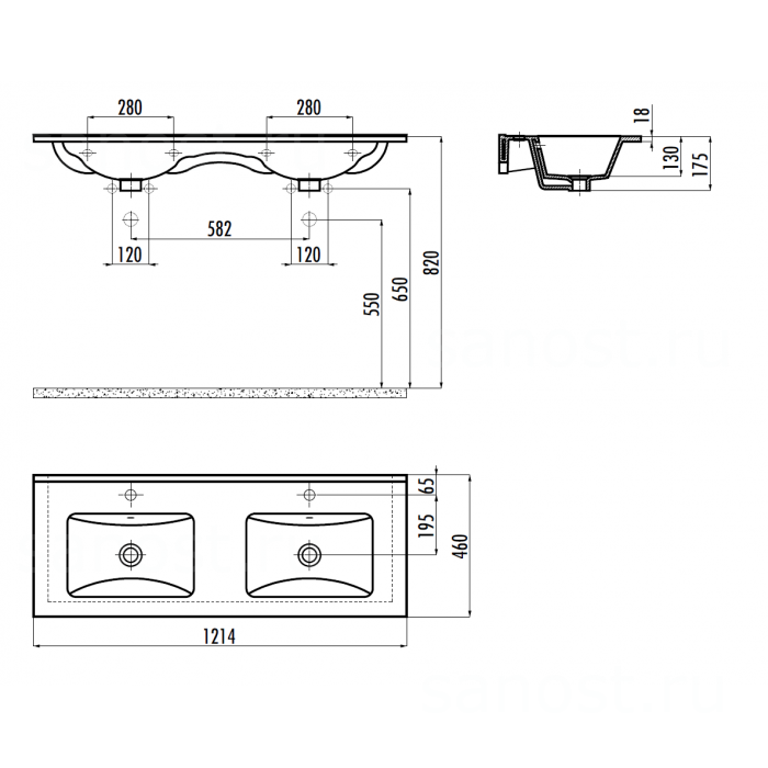 Технические характеристики CREAVIT Раковина SU121 мебельная (46*121см)