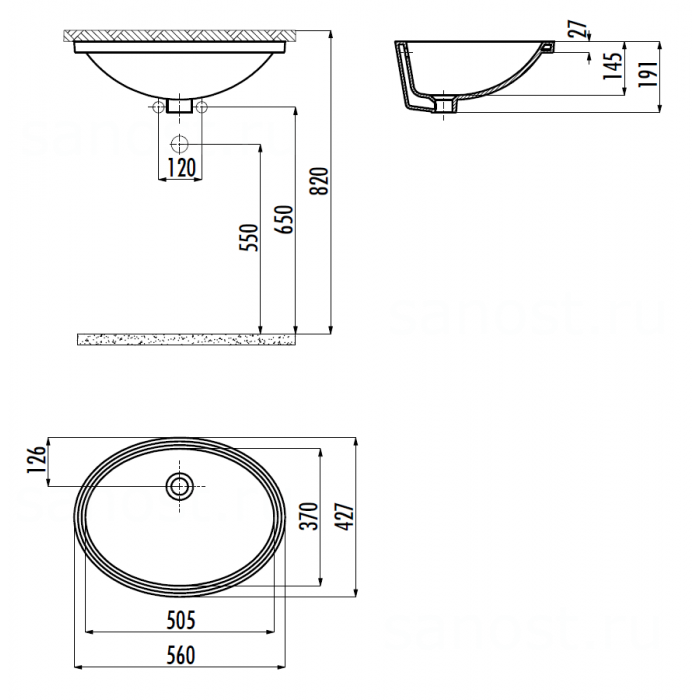 Технические характеристики CREAVIT Раковина TP216 под столешницу (37*51) TP216