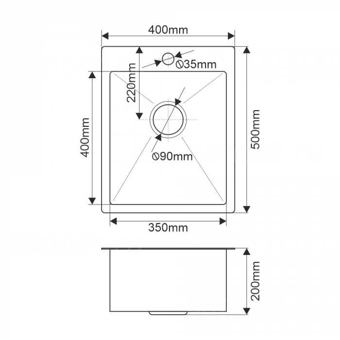 Технические характеристики Мойка R4050H MELANA ProfLine 3,0/200 САТИН врезная прямоугольная в комплекте с коландером