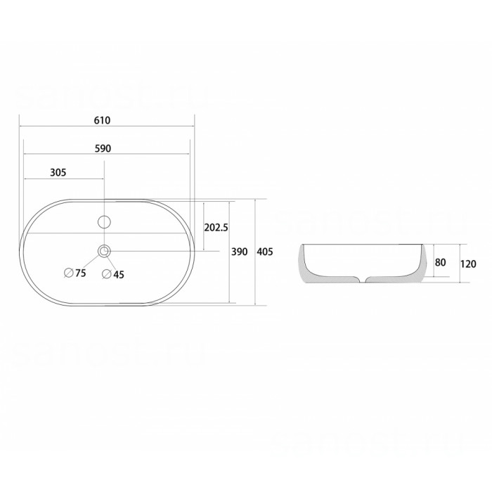| Монтажнакладная | Формаовальная | Материалфаянс |