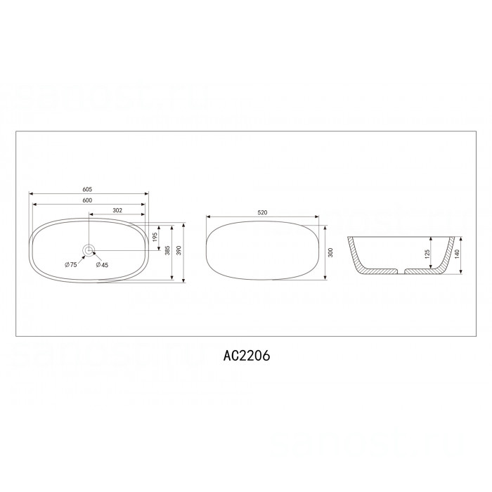 Технические характеристики Раковина накладная ABBER Rechteck AC2206MB черная матовая