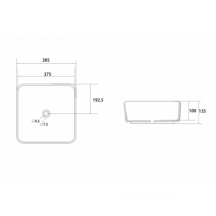 | Монтажнакладная | Формаквадратная | Материалфаянс |