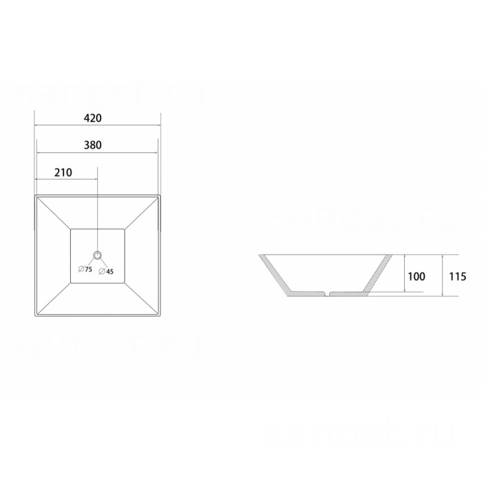 | Монтажнакладная | Формаквадратная | Материалфаянс |