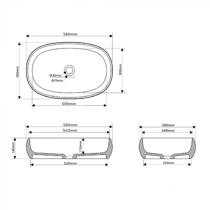 | Монтажнакладная | Формаовальная | Материалискусственный камень |