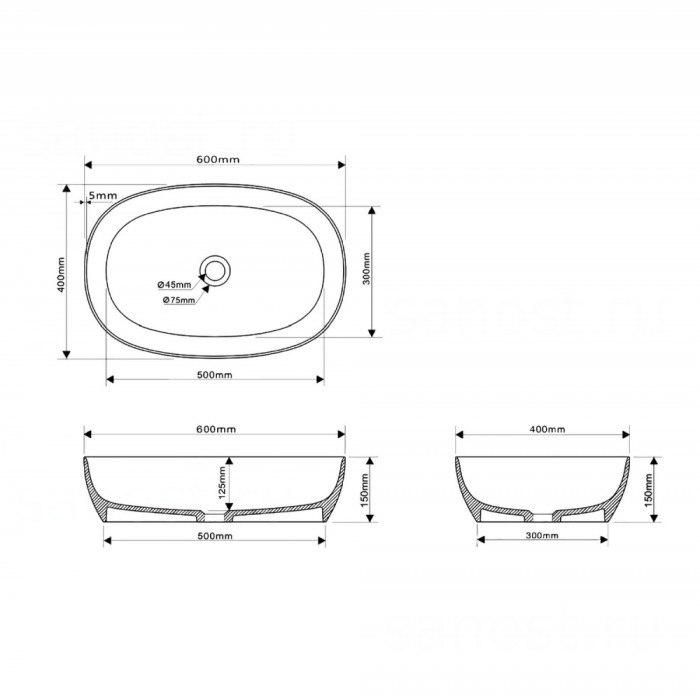 | Монтажнакладная | Формаовальная | Материалискусственный камень |