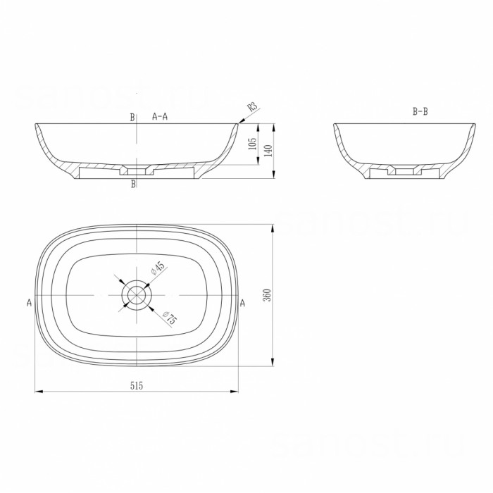 Описание товара: Раковина накладная ABBER Stein AS2637