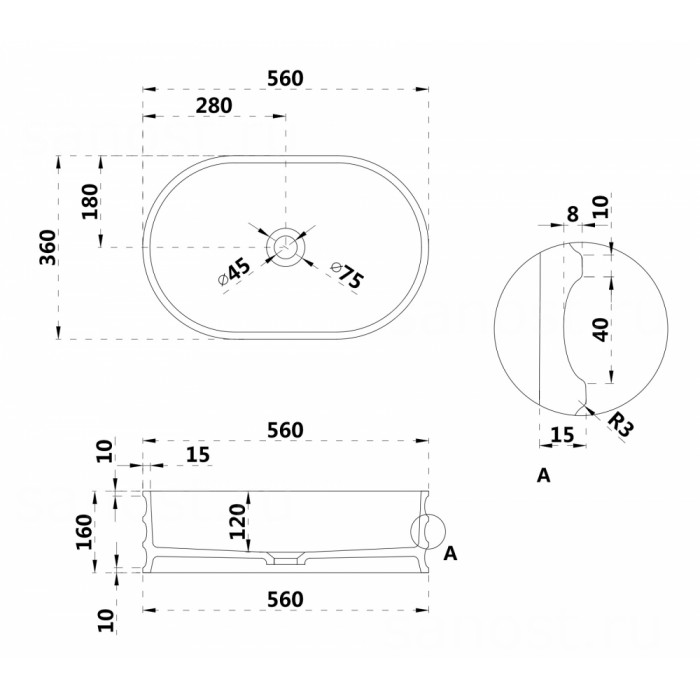 | Монтажнакладная | Формаовальная | Материалискусственный камень |