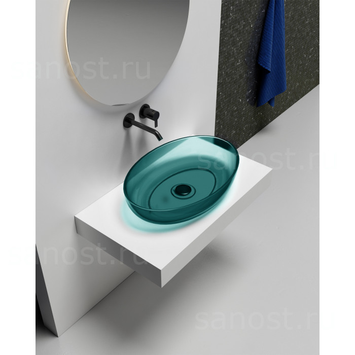 Особенности: - Форма: Овальная, что обеспечивает удобство использования и гармонично вписывается в любую планировку. - Материал: Полиэфирная смола, известная своей долговечностью и простотой в уходе. - Цвет: Бирюзовый "Aquamarin", который добавит свежести и ярких акцентов в ваш интерьер. - Гарантия: 5 лет, что подтверждает высокое качество и надежность изделия.