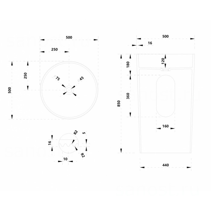 | Монтажнапольная | Формакруглая | Материалискусственный камень |