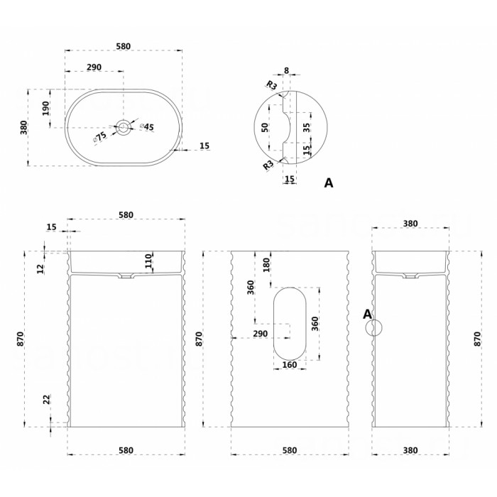 | Монтажнапольная | Формаовальная | Материалискусственный камень |