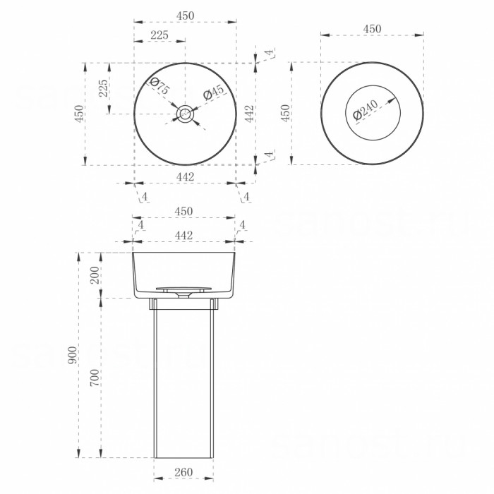 | Монтажнапольная | Формакруглая | Материалполиэфирная смола |