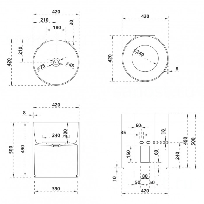 | Монтажподвесная | Формакруглая | Материалискусственный камень |
