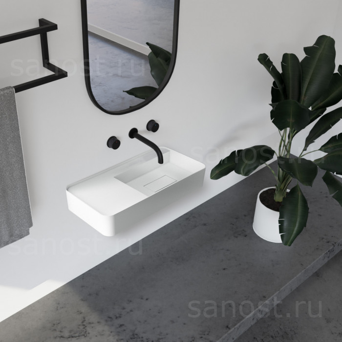 Раковина представлена в шикарном белом матовом цвете, который гармонично впишется в любой современный или классический интерьер ванной комнаты. Технология создания изделия гарантирует устойчивость к царапинам и загрязнениям, что делает её идеальным решением для ежедневного использования.