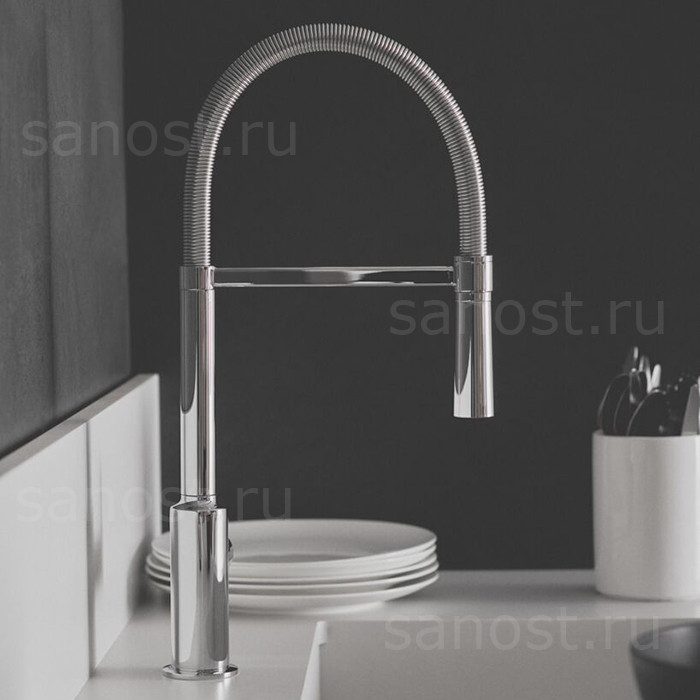 Преимущества: - Высокий смеситель с поворотным изливом на 360° - Два типа струи с легким переключением - Стильный хромированный дизайн - Простота установки и ухода