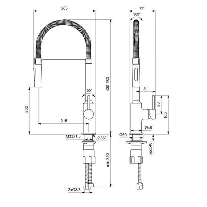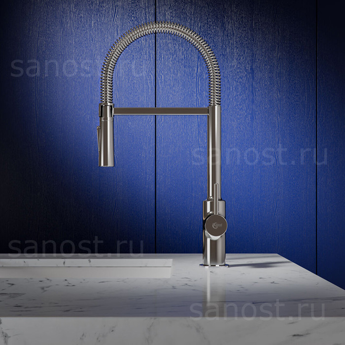 Этот смеситель предлагает два типа струи, которые можно легко переключать нажатием кнопки – выбирайте между мощной струей для быстрого наполнения кастрюль и мягкой струей для мытья овощей или фруктов. Идеальное решение для любого задания на кухне!