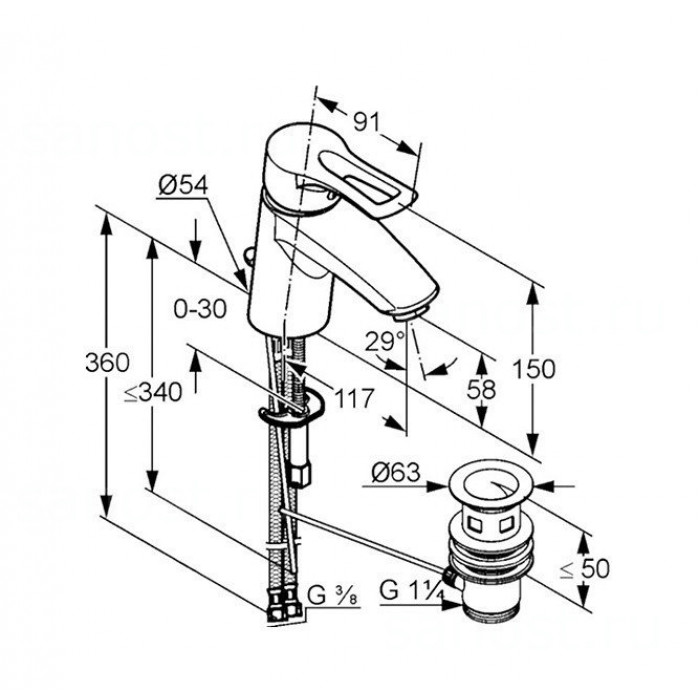 KLUDI MX 331250562 - Смеситель для раковины (хром), полый рычаг, монтаж на одно отверстие, класс расхода воды A - расход 6 литров при давлении 3 бар, аэратор S-pointer M24x1, керамический картридж с ограничителем горячей воды, гибкий подвод воды G 3/8, система быстрого монтажа, сливной гарнитур (донный клапан) G 1 1/4.