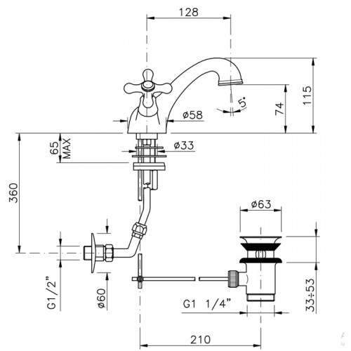 Характеристики: - Тип установки: На 1 отверстие - Высота излива: 128 мм — оптимальное решение для удобства использования. - Функция: Оснащен донным клапаном, что удобно для управления сливом воды. - Цвет: Золотистый латунный (Gold Brass) — этот изысканный оттенок будет прекрасно сочетаться с любыми сантехническими изделиями и добавит вашей ванной комнате изысканный акцент.