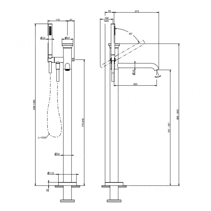 | МонтажНапольный | Тип смесителяОднорычажный |