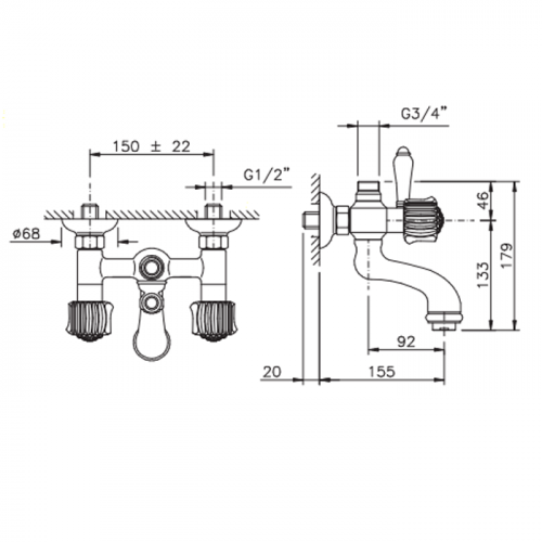 Описание товара: Смеситель для ванны Nicolazzi Onice настенный