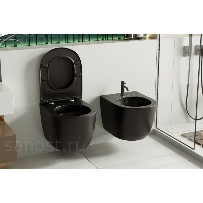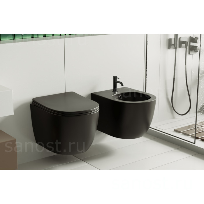 Биде ABBER Bequem AC1150MB подвесное черное матовое, Безободковый, Антигрязевое покрытие, высококачественная керамика устойчивая к царапинам, температура обжига более 1200°C
