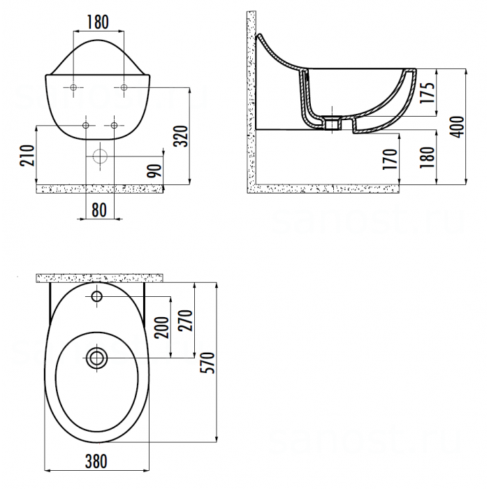 Технические характеристики CREAVIT FOGLIA Биде подвесное