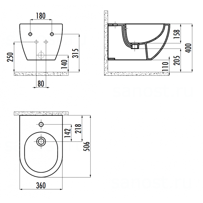 Технические характеристики CREAVIT FREE Биде БЕЛЫЙ МАТОВЫЙ
