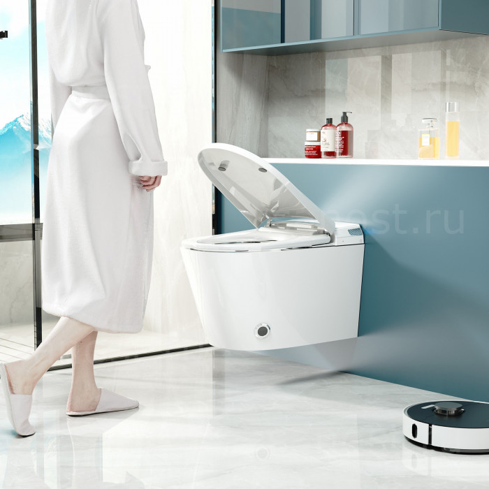 Электронный унитаз-биде ABBER Bequem AC1119S подвесной белый, функция Антивсплеск, Антигрязевое покрытие, сиденье в комплекте, режим смыва: импульсный,