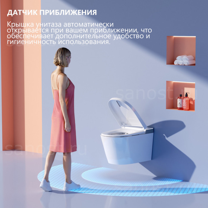 Электронный унитаз-биде ABBER Bequem AC1120S подвесной белый, функция Антивсплеск, Антигрязевое покрытие, сиденье в комплекте, режим смыва: импульсный,