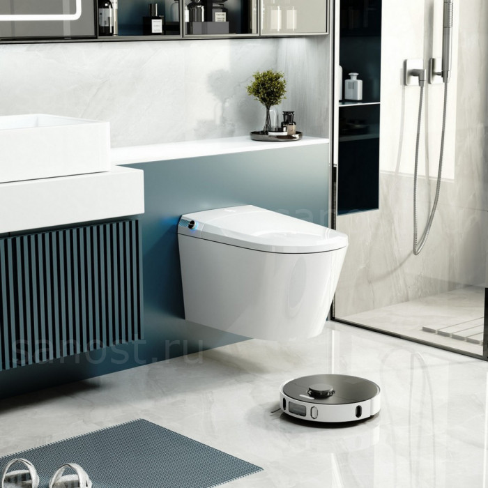 Технические характеристики Комплект ABBER подвесной электронный унитаз-биде Bequem AC1119S белый с импульсным смывом с инсталляцией AC0101P