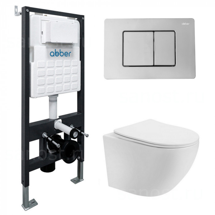 Комплект подвесной унитаз ABBER Bequem AC1100T белый с инсталляцией AC0105 и кнопкой AC0120 хром