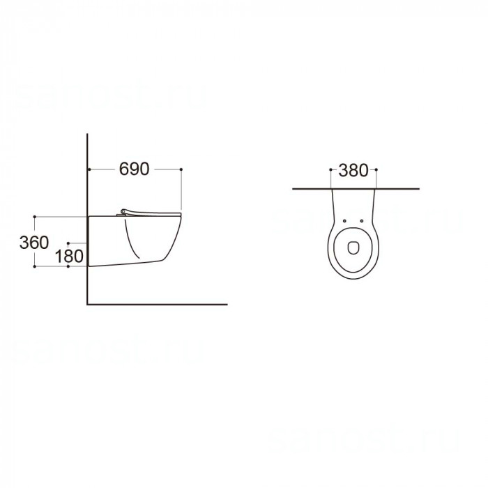 Технические характеристики Подвесной унитаз для людей с ограниченными возможностями, сиденье дюропласт, 690*380*360
